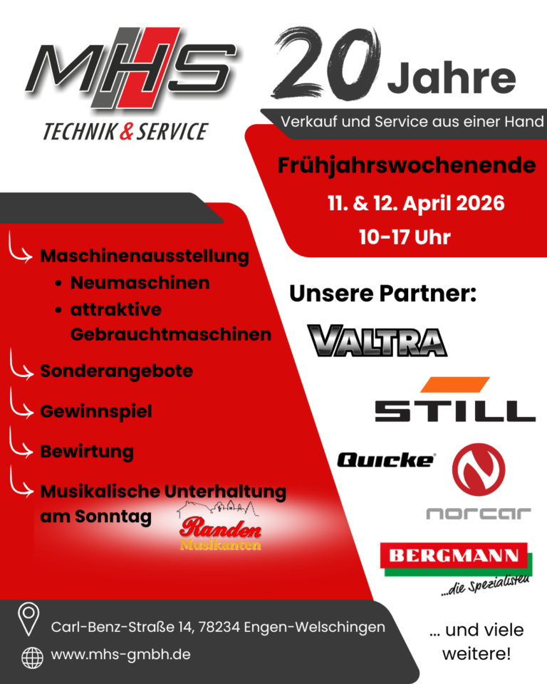 Am 11. & 12. April laden wir Sie von 10-17 Uhr zu unserem Frühjahrswochenende ein. Neben einer großen Maschinenausstellung von Neumaschinen und attraktiven Gebrauchtmaschinen unserer führenden Partnern erwarten Sie Sonderangebote und ein Gewinnspiel mit exklusiven Preisen.